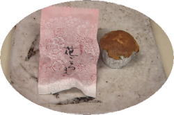 葵のふるさと 後に紹介する『庵』(いおり)の生地と同じですが粒餡を包んであります。 クルミを載せて焼き上げました。 1個 145円 |